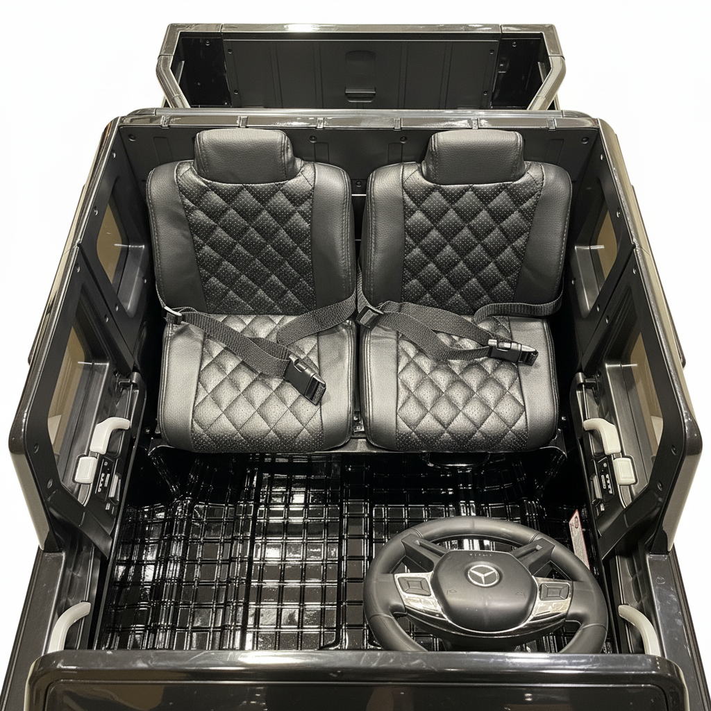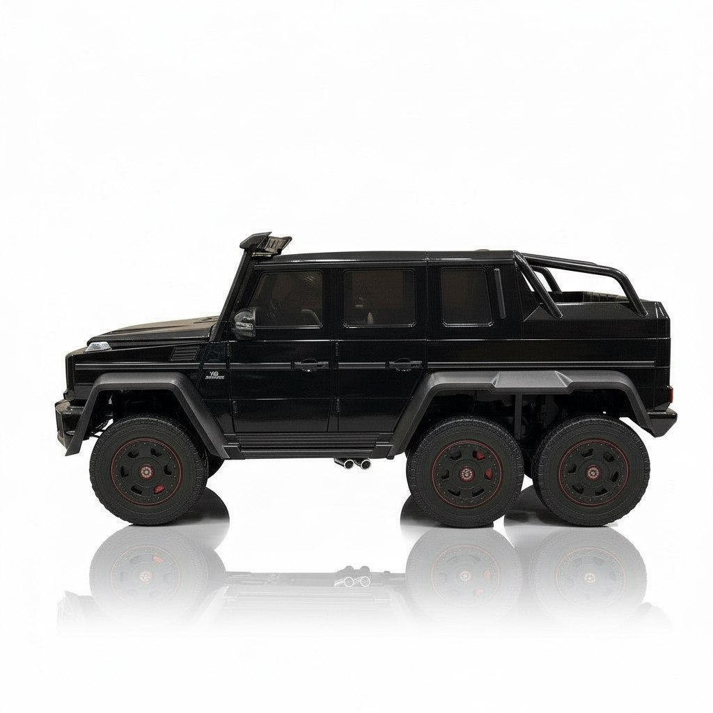 Met zes wielen en vier krachtige motoren biedt de G63 6×6 een uitzonderlijke rijervaring. Dankzij de echte 4-wielaandrijving rijdt deze Mercedes moeiteloos over gras, grind of verharde wegen. De extra sterke 24V accu zorgt voor langdurig speelplezier, terwijl de stille, duurzame rubberen banden optimale grip bieden op elk terrein.