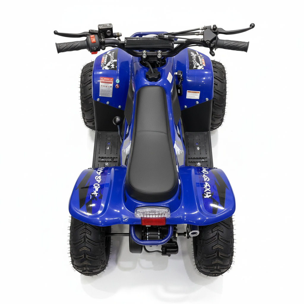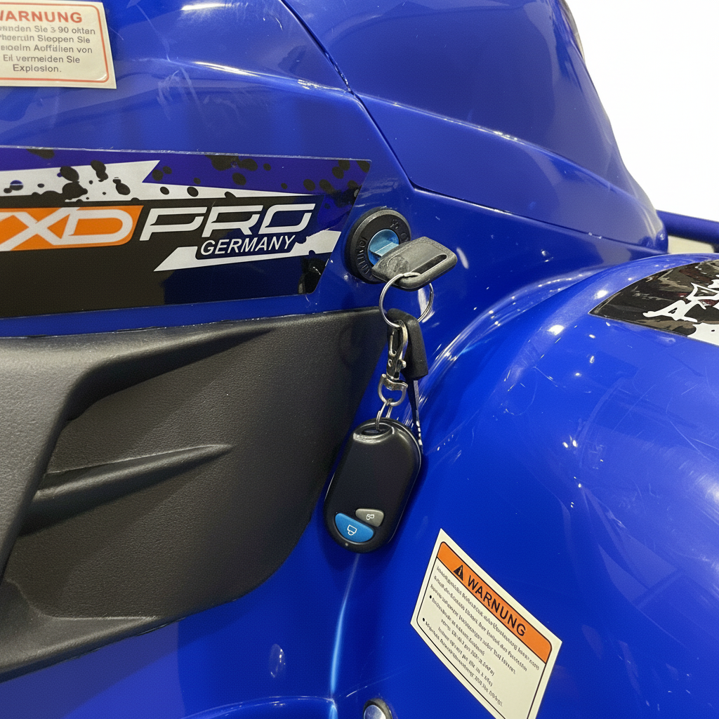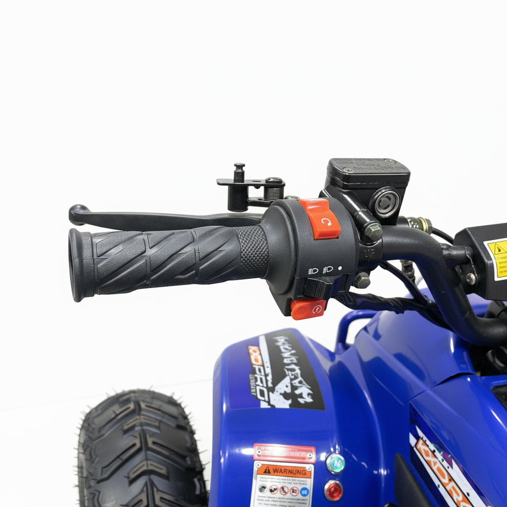 Dat deze ATV Kinder Quad Evolution 125cc Blauw als krachtig bestempeld kan worden, zeggen we met gevoel voor understatement. De ruime inhoud van de cilinder, 125cc in totaal, is niet het enige wat dit model tot één van de krachtigste kinderquads van nu maakt. Deze 125cc 4-takt kinder quad combineert dit namelijk met grote afmetingen, een stevig frame en grote veringen die zeer goed werken. Kracht wordt gecombineerd met snelheid, want deze kinderquad op benzine kan een maximale snelheid van 65 km/u behalen. Dankzij de begrenzing stel je zelf als ouder de maximaal haalbare snelheid van deze quad in.