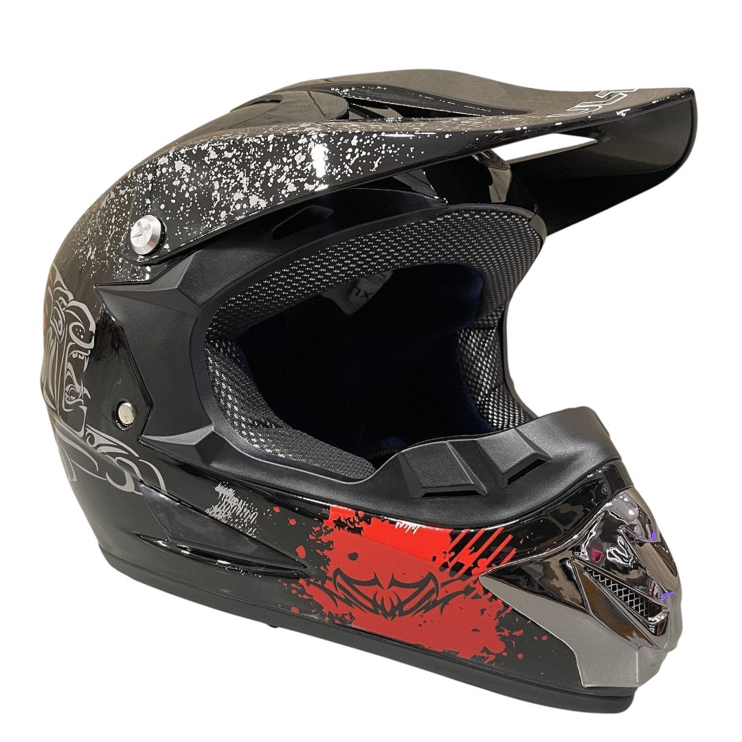 Crosshelm voor kinderen verkrijgbaar in verschillende kleuren en maten. De helmen zijn gecertificeerd en voorzien van gewatteerde en uitneembare voering van ultra-pluche zweet absorberend en tevens is de voering wasbaar. Deze helmen zijn duurzaam ontwikkeld en gemaakt van ABS-plastic en bieden mede dankzij de veiligheidsslot met eenvoudige riemverstelling een perfecte pasvorm.