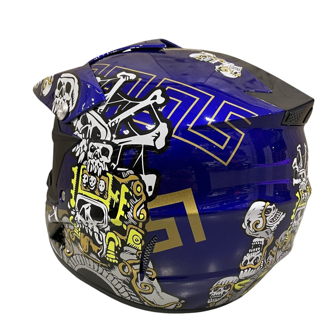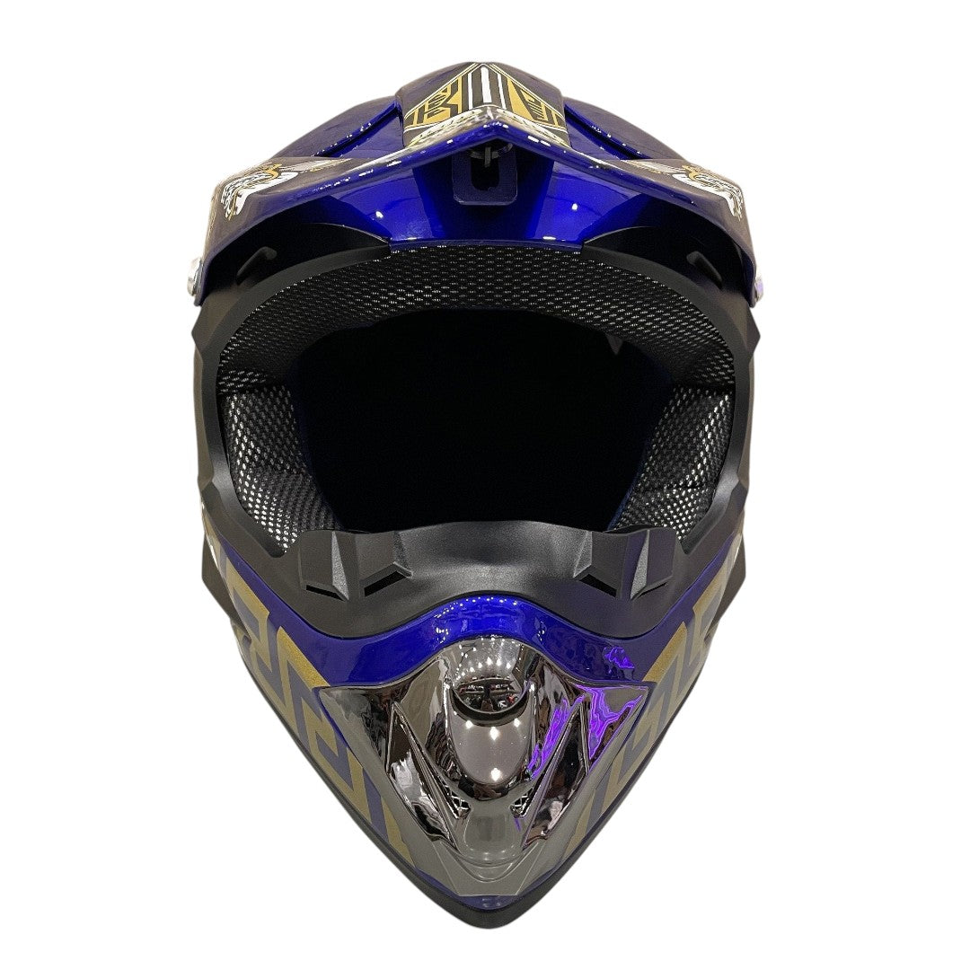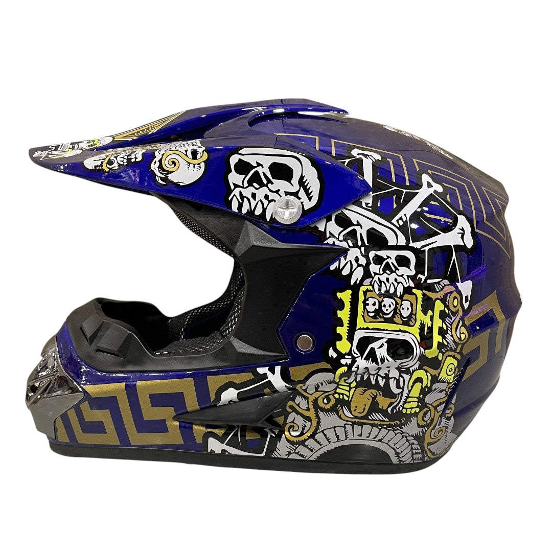 Crosshelm voor kinderen verkrijgbaar in verschillende kleuren en maten. De helmen zijn gecertificeerd en voorzien van gewatteerde en uitneembare voering van ultra-pluche zweet absorberend en tevens is de voering wasbaar. Deze helmen zijn duurzaam ontwikkeld en gemaakt van ABS-plastic en bieden mede dankzij de veiligheidsslot met eenvoudige riemverstelling een perfecte pasvorm.