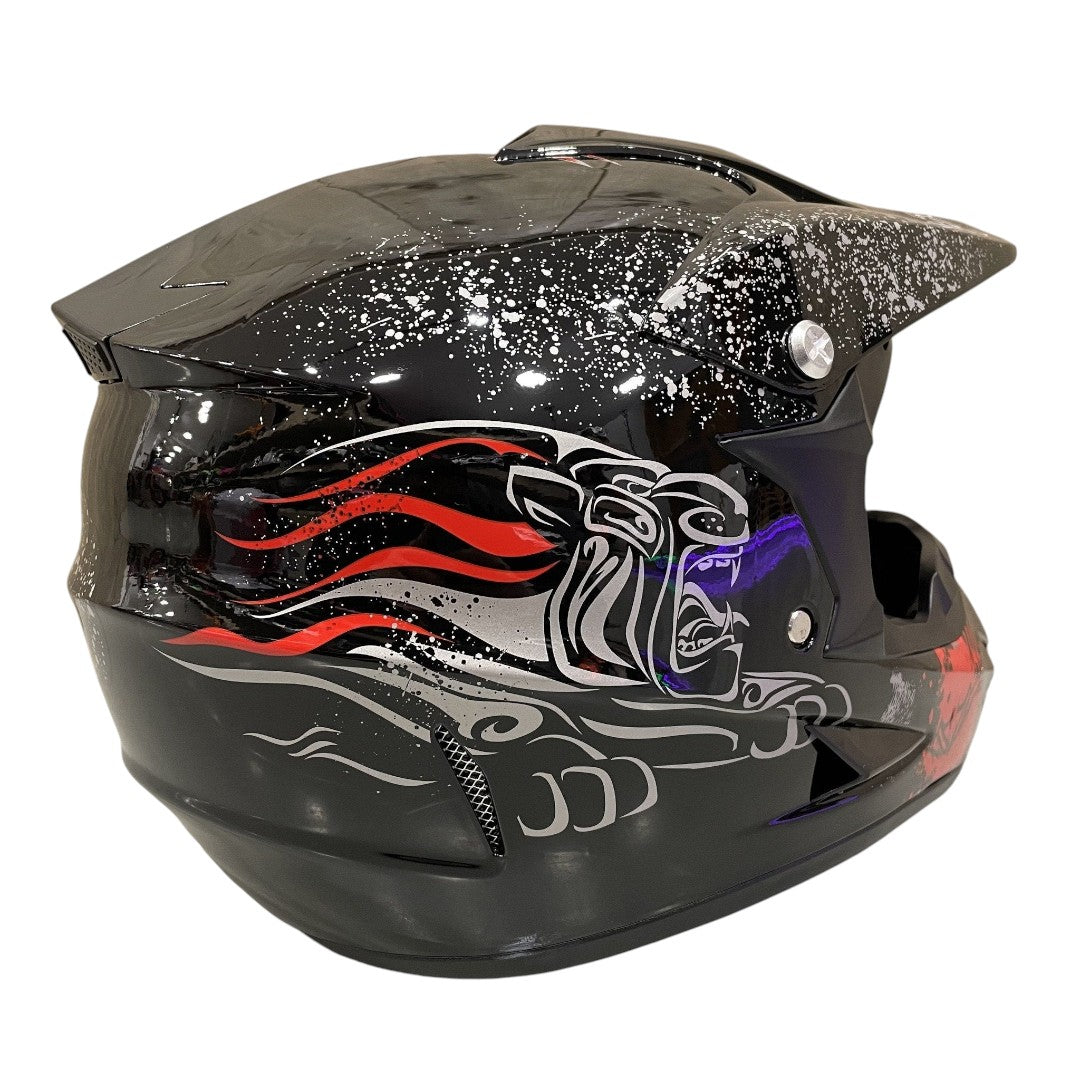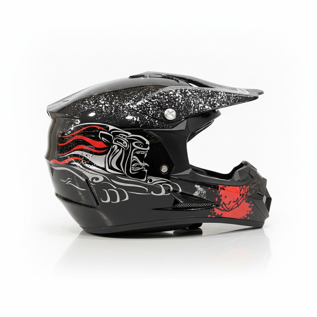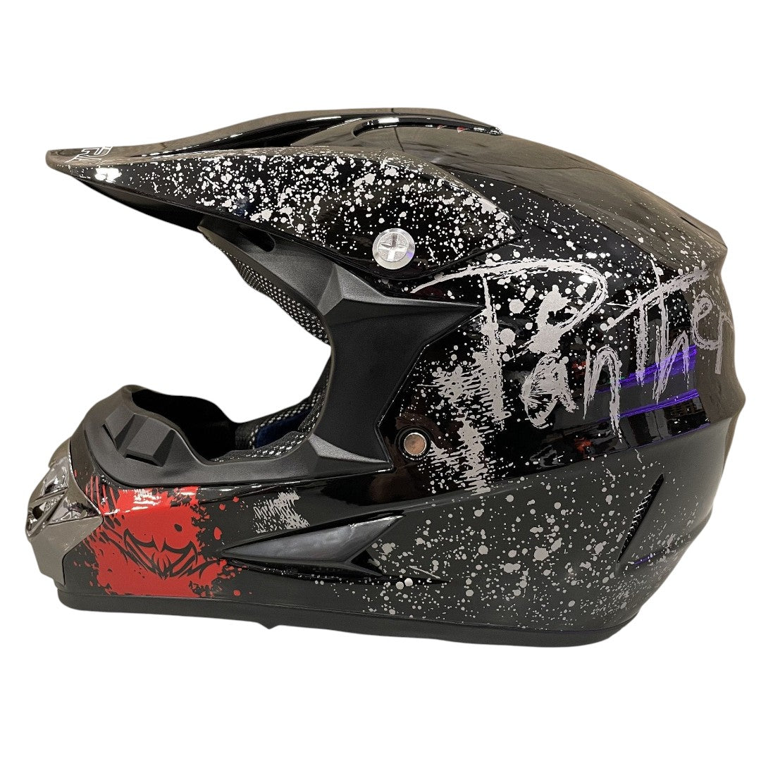 Crosshelm voor kinderen verkrijgbaar in verschillende kleuren en maten. De helmen zijn gecertificeerd en voorzien van gewatteerde en uitneembare voering van ultra-pluche zweet absorberend en tevens is de voering wasbaar. Deze helmen zijn duurzaam ontwikkeld en gemaakt van ABS-plastic en bieden mede dankzij de veiligheidsslot met eenvoudige riemverstelling een perfecte pasvorm.