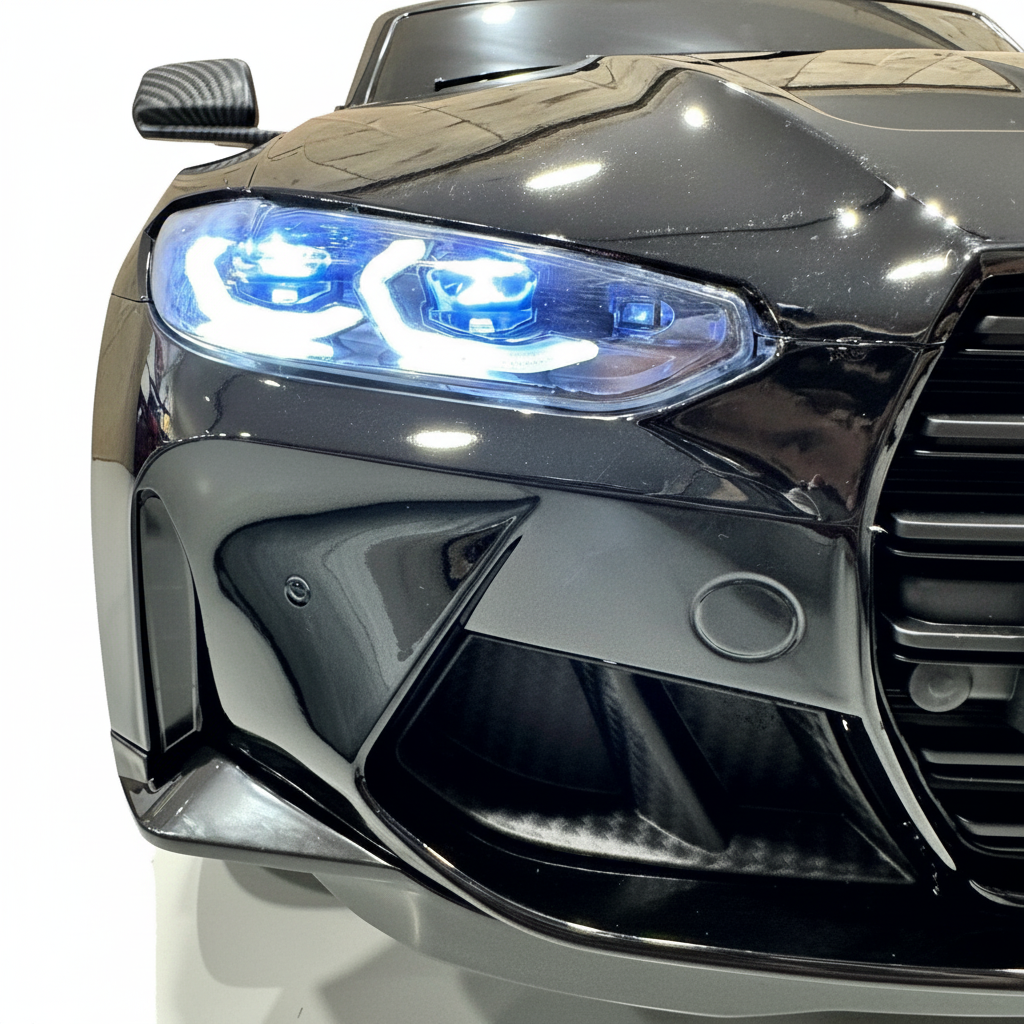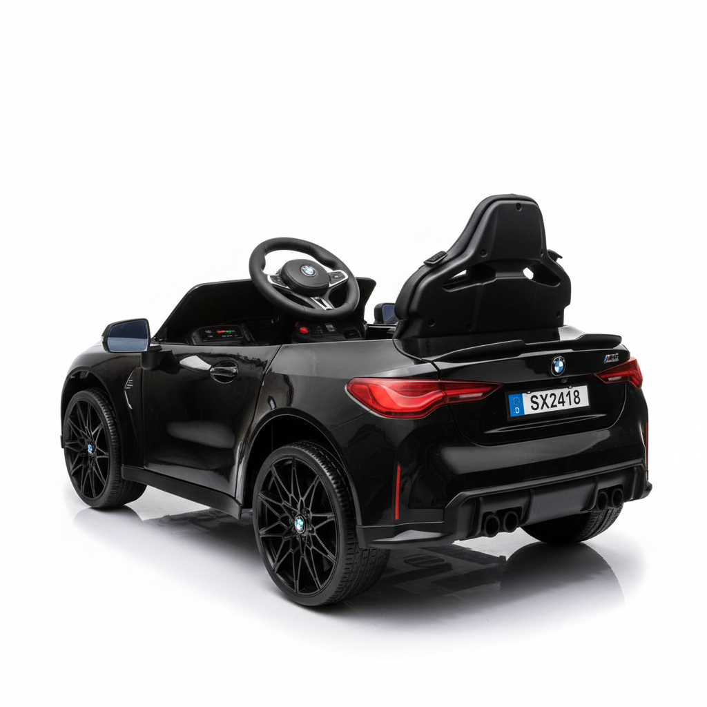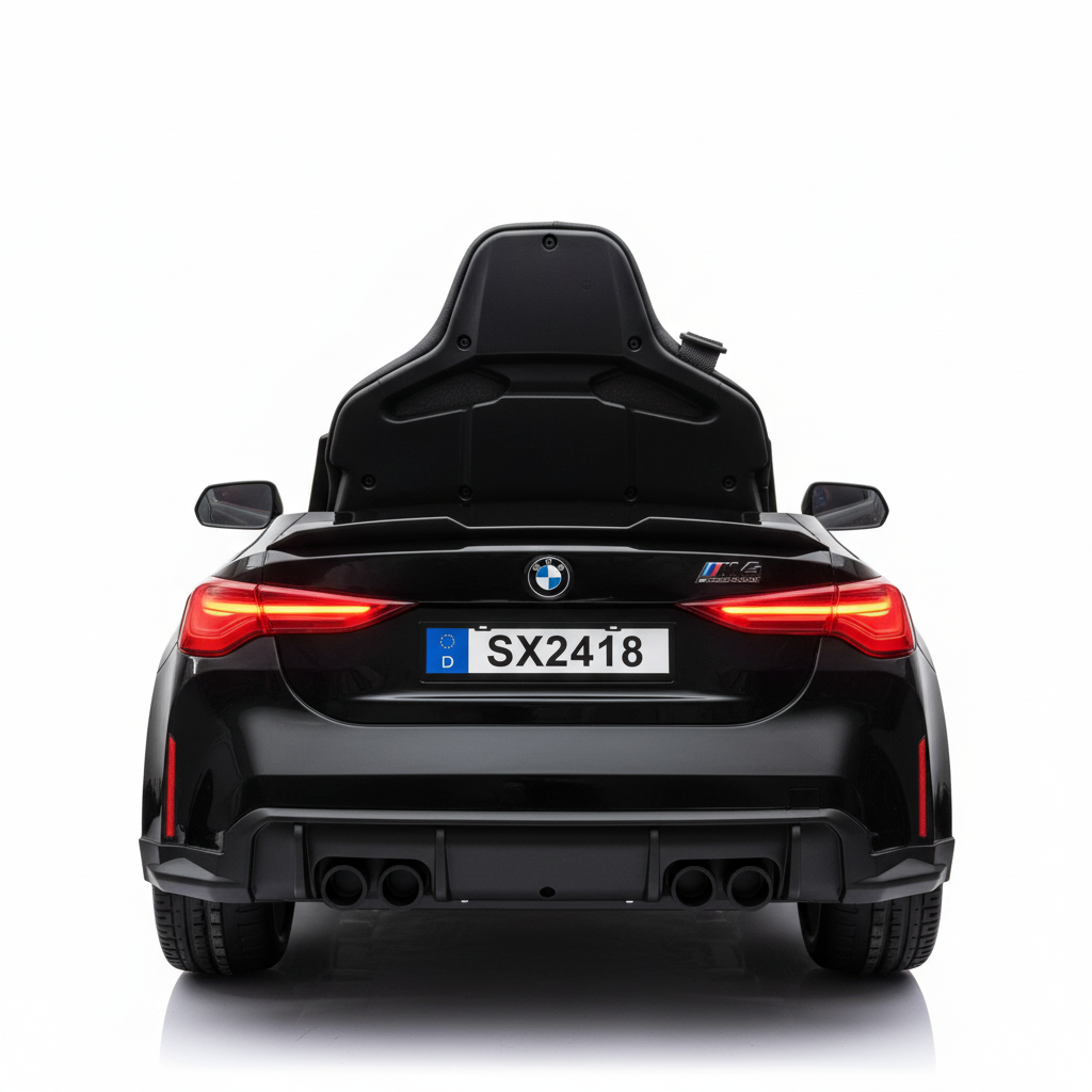Met deze metallic zwarte BMW M4 kinderauto maak je indruk. Dit 1-persoons model is voorzien van verlichting, soft start en een claxon. Hierdoor is deze kinderauto altijd zichtbaar en hoorbaar. Je kindje zal ongelofelijk blij zijn met dit cadeau. Daarom koop je deze BMW M4 Elektrische Kinderauto metallic-zwart bij CarKiddo. Extra leuk is dat je een kenteken op maat kan laten maken, bijvoorbeeld met de naam van je kindje.