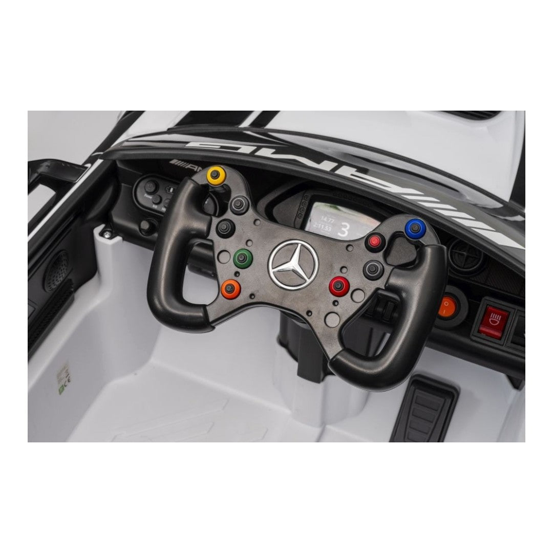De Mercedes-Benz AMG GT is een officieel gelicentieerde kinderauto. Dit betekent dat wij toestemming hebben om alle logo's, stickers en badges te gebruiken van Mercedes-Benz.