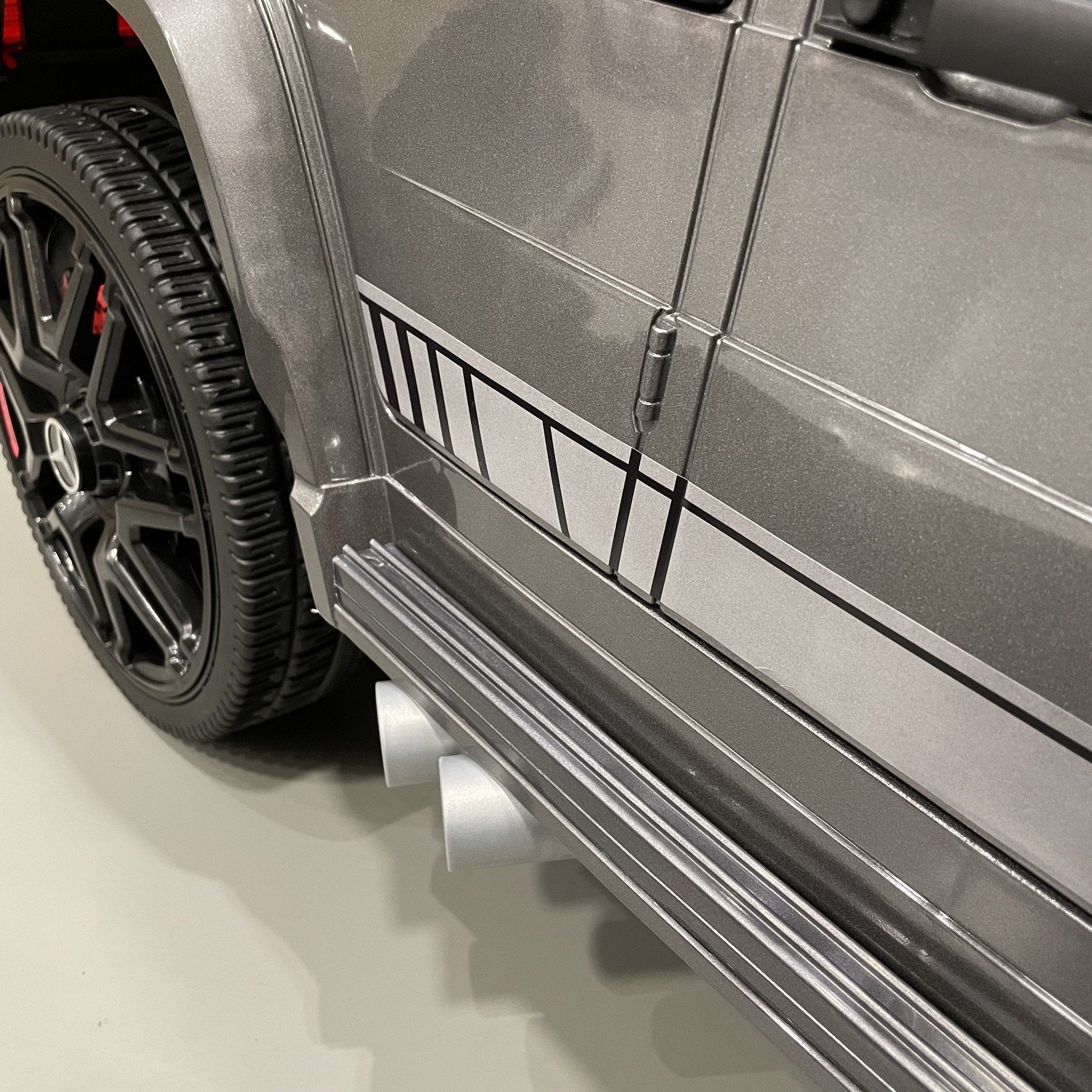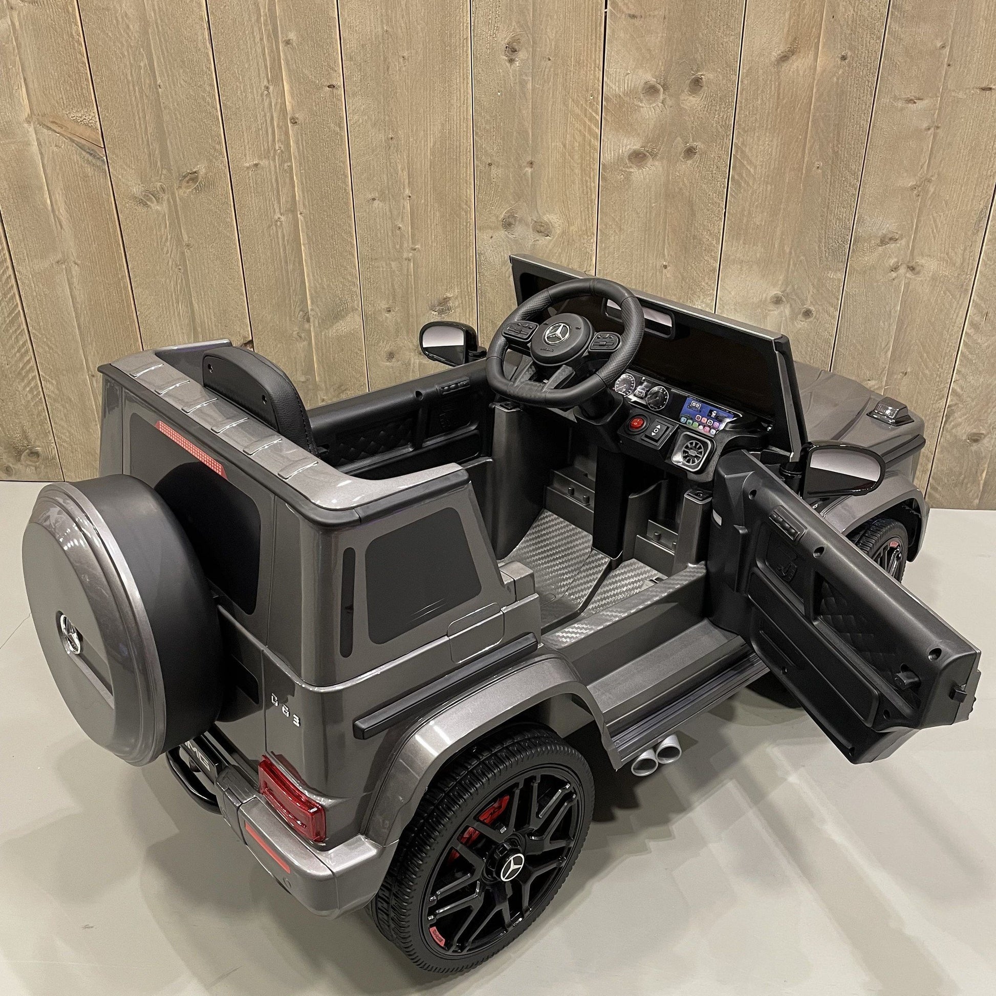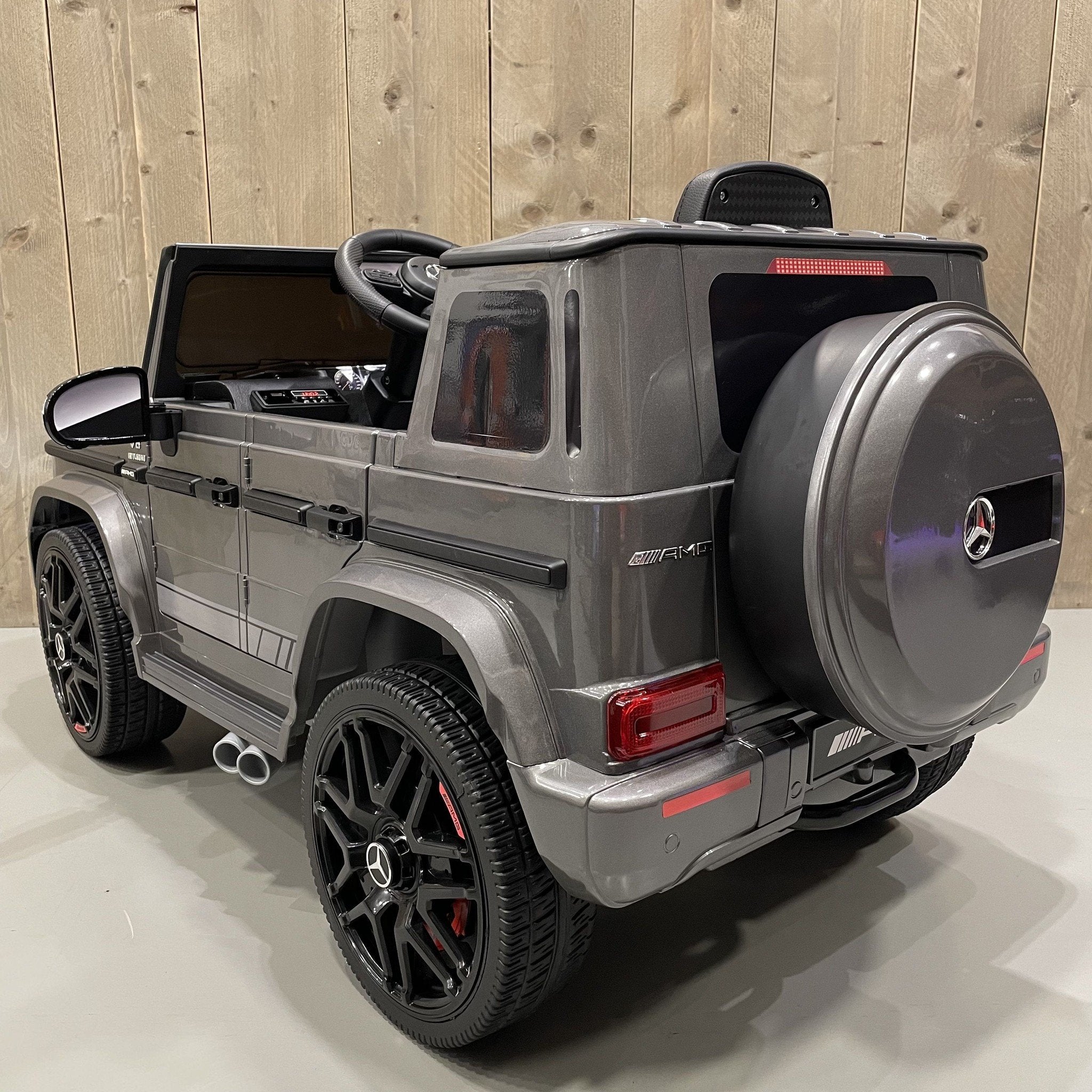De Mercedes G63 AMG elektrische kinderauto is de perfecte keuze voor kinderen die dol zijn op stoere, luxe voertuigen. Deze kinderauto is gebaseerd op de iconische, echte Mercedes G63 AMG en biedt een realistische rijervaring die zowel binnen als buiten tot zijn recht komt. Dankzij de hoogwaardige afwerking en luxe details voelt deze kinderauto als een echte mini-Mercedes! Bij CarKiddo is de G63 accuauto exclusief voorzien van een metallic grijze gespoten lak!