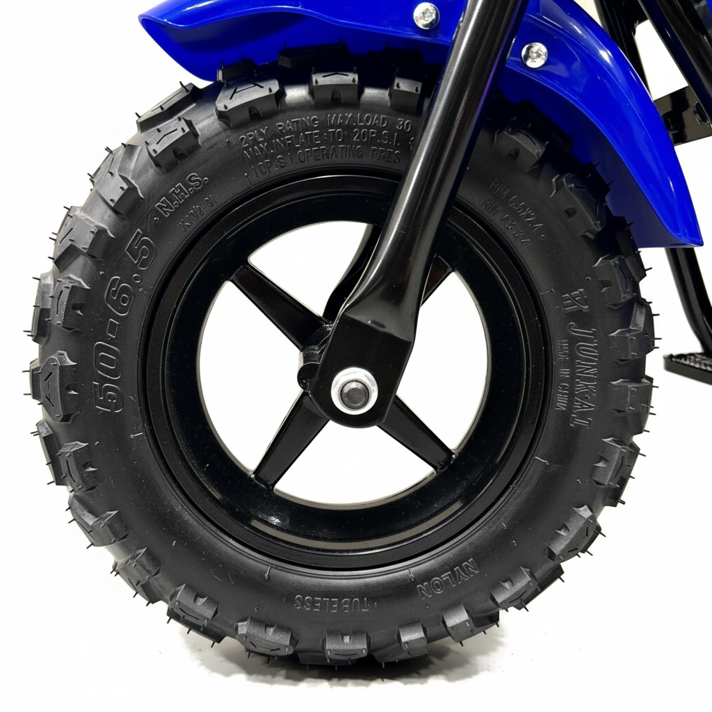 Deze blauwe kindercrosser Monkey wordt gekenmerkt door zijn kracht en comfort. De brushless motor en de accu heeft een inhoud van 24V. Hierdoor heeft dit model genoeg kracht om iedere ondergrond aan te kunnen, hoe ruw het terrein ook is. Andere eigenschappen die hieraan bijdragen zijn de rubberen luchtbanden en het extra stevige metalen frame. Je zou met deze blauwe elektrische kindercross bike kunnen gaan veldrijden. Zo ruim zijn de mogelijkheden als je voor dit kindervoertuig kiest. We overdreven niet toen we zeiden dat dit de ultieme kindermotor voor de kleinste van dit moment is. Ontdek zelf waarom.