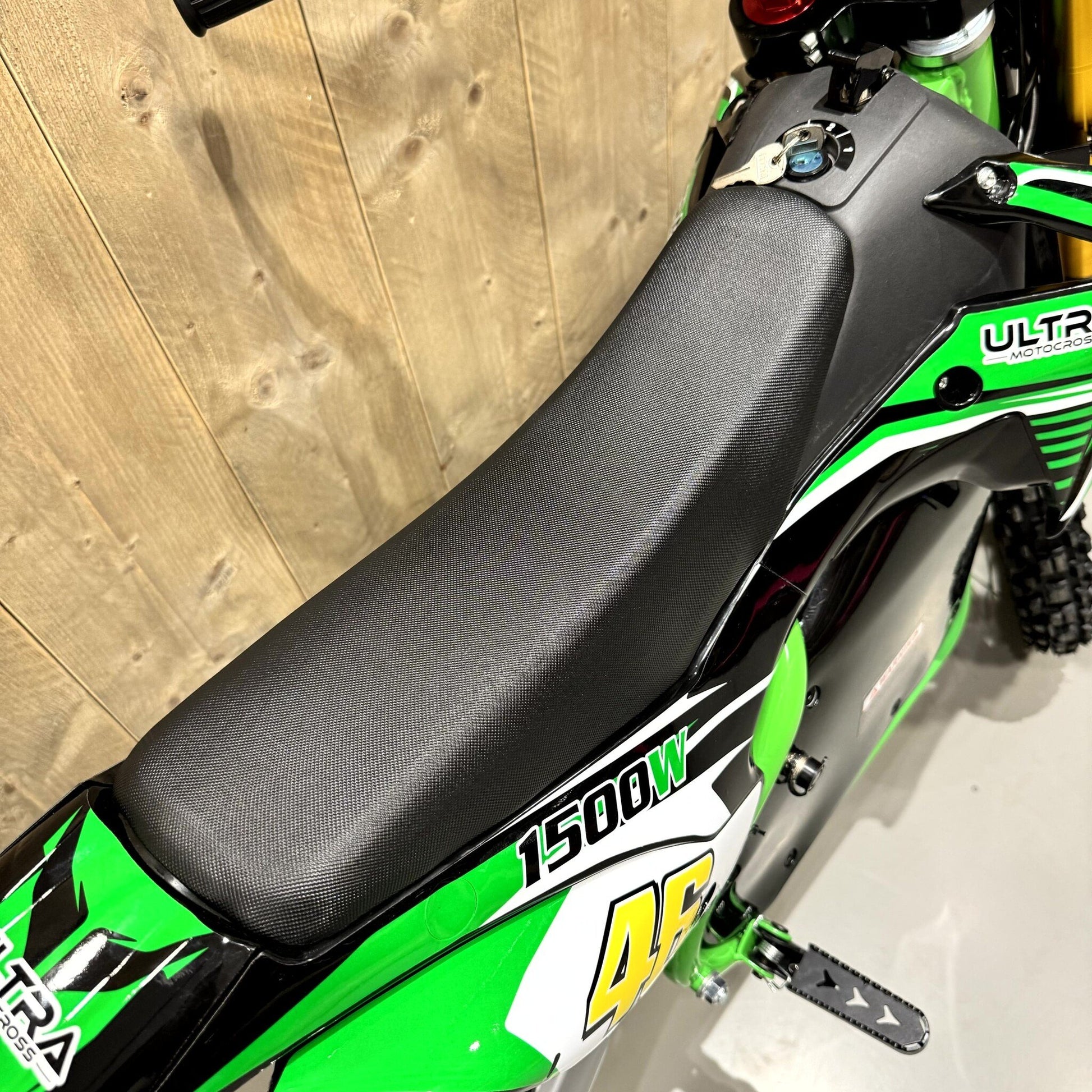 Hierboven stipten we al aan dat deze elektrische kindercrosser beschikt over een vermogen van in totaal 1500 watt. Dit hoge vermogen wordt gecombineerd met een accu van 60V. Hoe ruimer de inhoud van een accu is, hoe krachtiger een kindercrosser is. De combinatie van het vermogen en de accu zorgt ervoor dat dit niet alleen een model met een lange levensduur is, maar ook dat deze 1500W kindercrosser geschikt is voor alle terreinen. Van asfalt tot stug zand, dit model is tegen alles bestand. Het vermogen is niet het enige wat hieraan bijdraagt. Ook de extra stevige metalen frame, de formidabele veringen (verstelbaar) en de rubberen banden maken dit model geschikt voor iedere ondergrond. Daarom is dit de ultieme elektrische crosser.