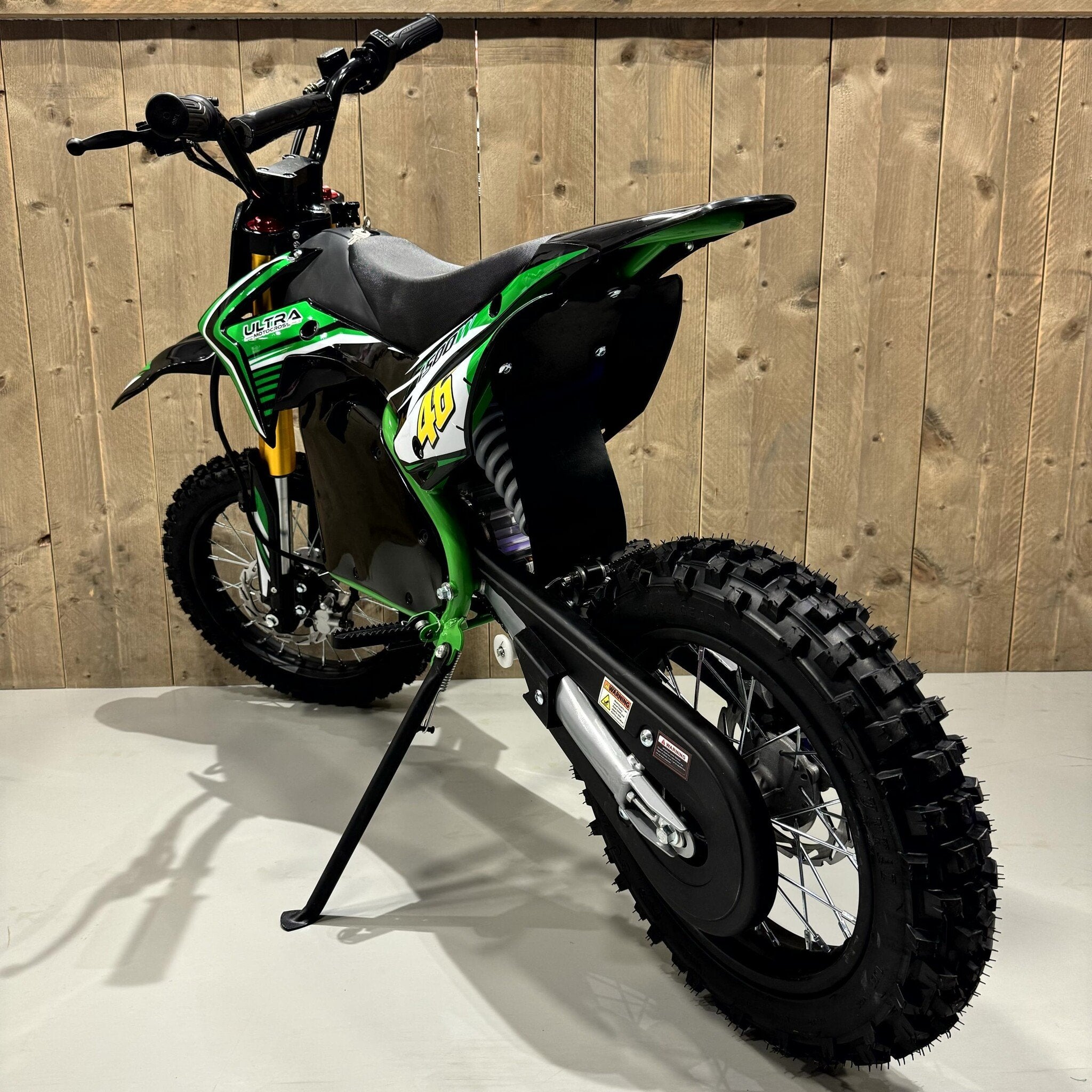 Met zijn opvallende groene kleur zal het niemand ontgaan als je kind op deze Elektrische Kindercrosser 1500W groen rijdt. Met 1500 watt aan vermogen is dit de krachtigste model elektrische crosser uit ons ruime aanbod. Tevens is dit een medium formaat crosser. Dit model is geschikt voor kinderen van ongeveer 6 tot 14 jaar. Omdat dit een automatische kindercrosser is, hoeft er niet geschakeld te worden. Dit maakt het crossen voor ieder kind toegankelijk. Benieuwd naar de mogelijkheden van deze elektrische kindercrossers? Lees dan snel verder. Op zoek naar een model dat kleiner is? Kies dan voor deze Elektrische Kindercrosser 1000W Blauw.