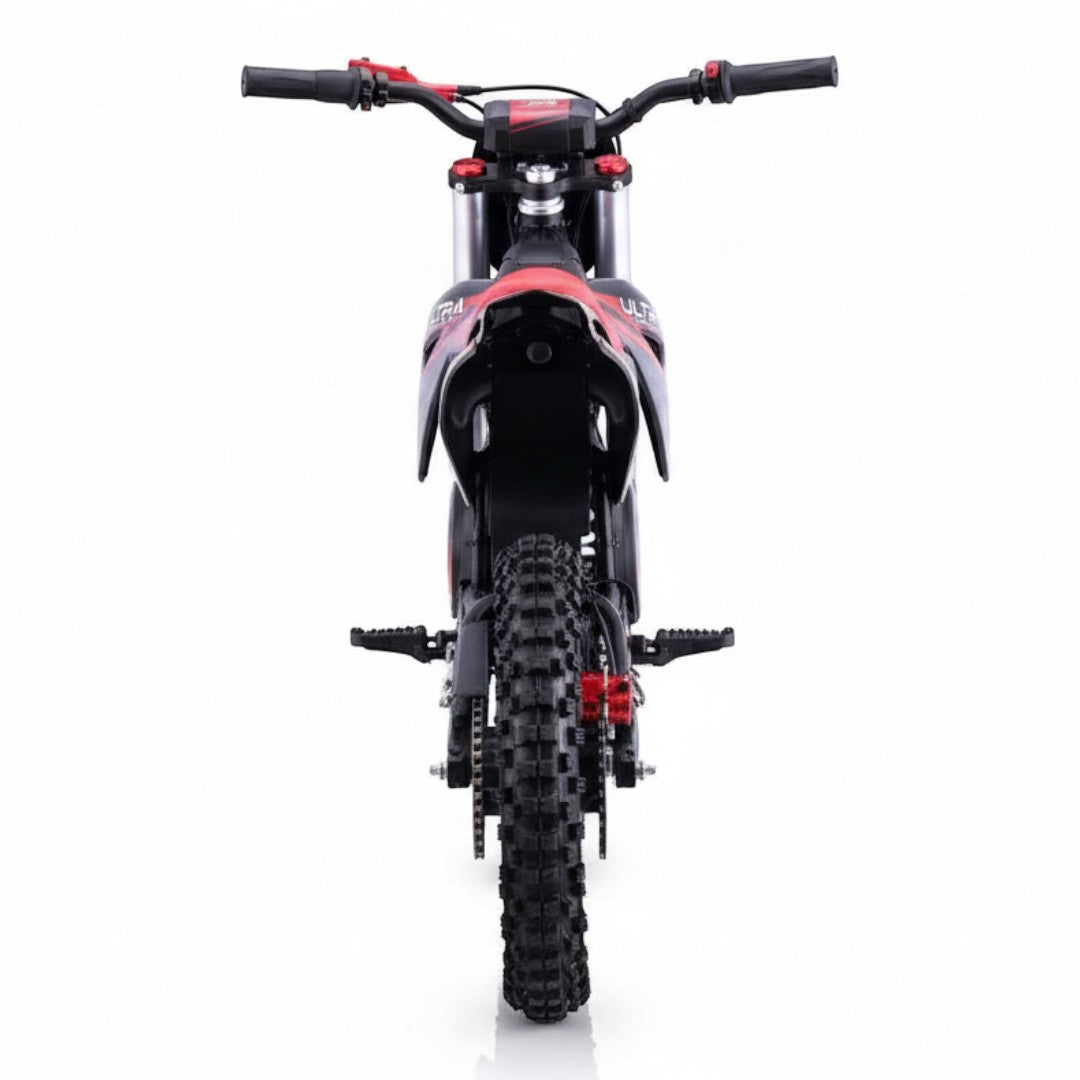 Deze elektrische crosser is geschikt voor uiteenlopende ondergronden zoals gras zand grind en bospaden. Het stevige metalen frame en de verstelbare vering zorgen voor stabiliteit en controle tijdens elke rit. De brede rubberen banden bieden optimale grip ongeacht de omstandigheden