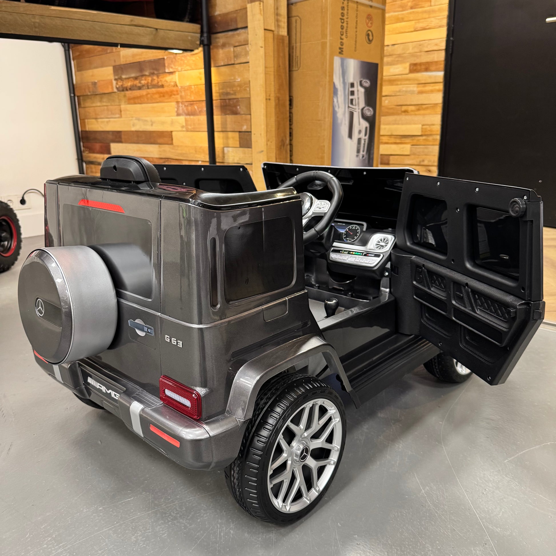 De G63 AMG kinderauto in het gespoten metallic Grijs van CarKiddo is niet zomaar een standaard model wij leveren deze in full-option uitvoering: van rubberen banden tot luxe lederen zitting, van multimedia tot afstandsbediening. Geen compromis, geen “instap-versie”, maar een complete beleving.